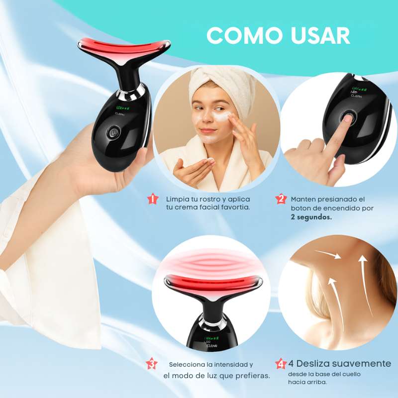Sí. Solo enciéndelo, elige el modo y la intensidad, y realiza movimientos suaves sobre rostro y cuello. Es seguro, práctico y no requiere experiencia previa.