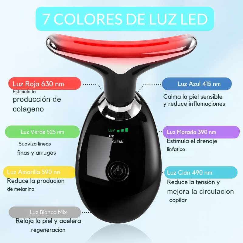 Luz LED de 7 colores para revitalizar y reafirmar la piel |