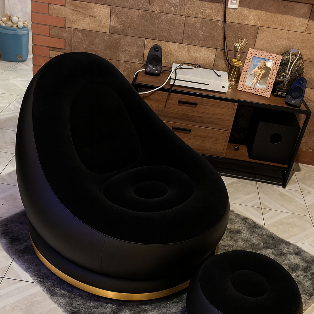 Honestamente pensé que no iba a aguantar mi peso 😅 pero está súper firme. Lo inflé con una bombita que venia con el sofa y en 5 minutos ya estaba listo. 10/10